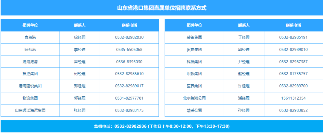附件:山东省港口集团直属单位招聘联系方式